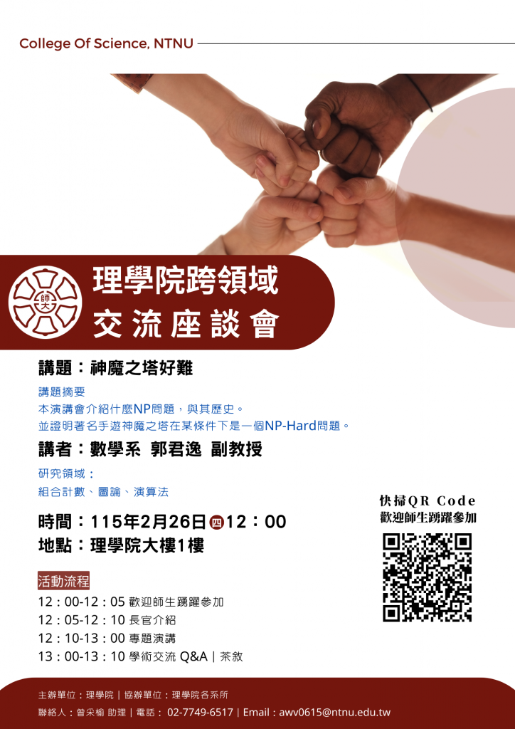 主辦單位:理學院︱承辦人:曾采榆助理︱聯絡電話:7749-6517