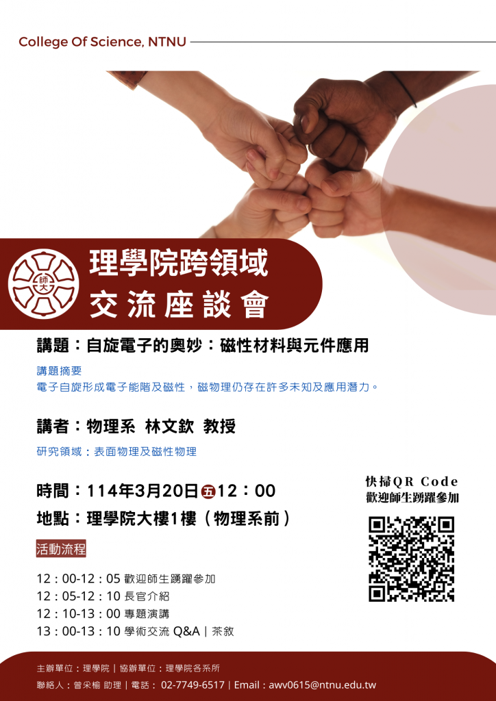 講題:自旋電子的奧妙:磁性材料與元件應用