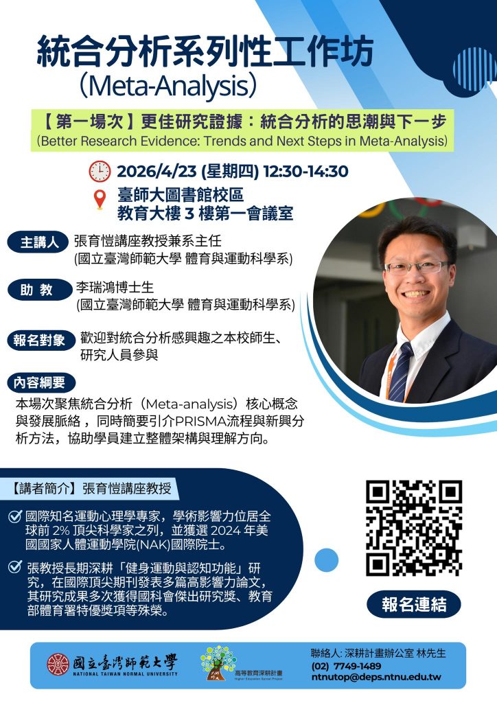 在統合分析實務與學術研究領域深具影響力,歡迎踴躍報名參加!